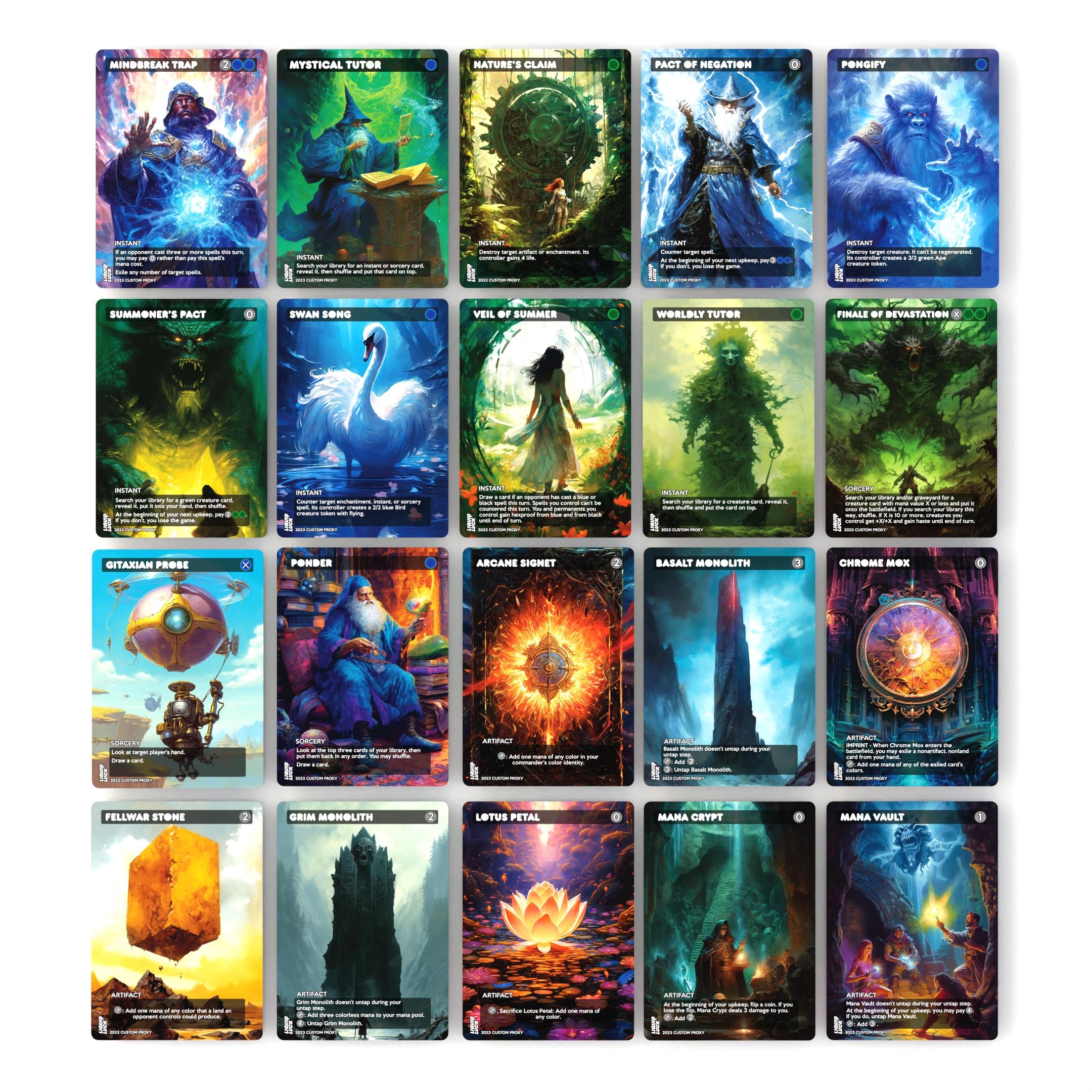 Browse hundreds of individual MTG proxy single cards—perfect for Commander, Modern, Legacy, and casual play—use the search bar to quickly find exactly what you need!